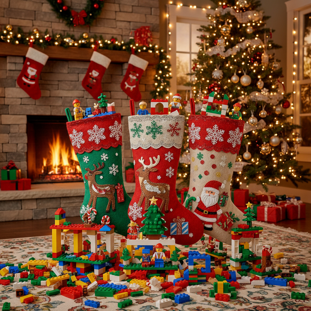 Toy Train Santa Christmas Stocking in festive holiday setting